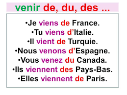 Konjugation von venir (in Verbindung mit Herkunftsbezeichnung du / de la / de l‘ / des) -